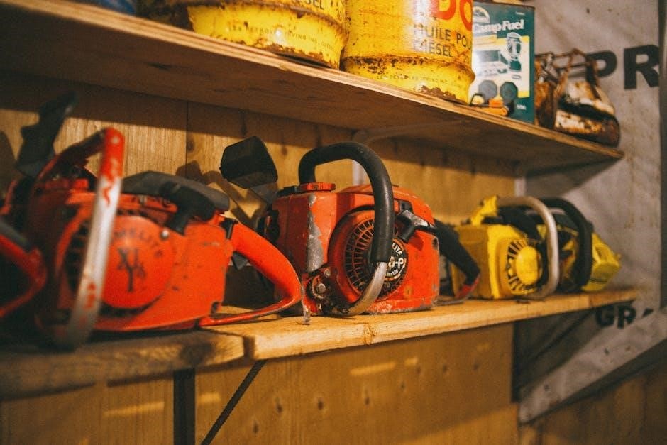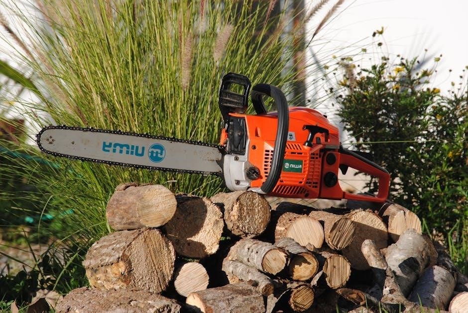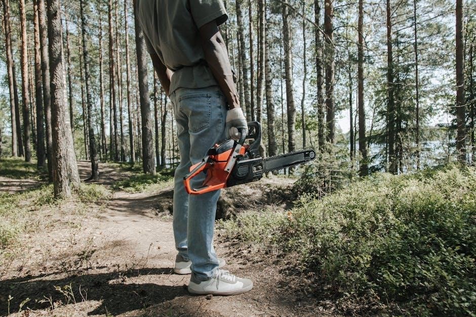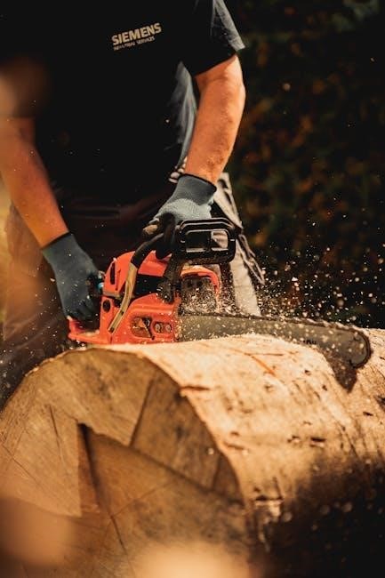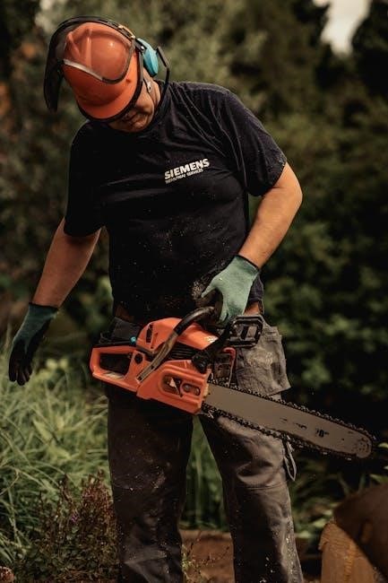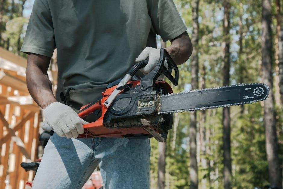Users must familiarize themselves with the chain brake functionality, a critical safety feature. Manuals highlight the necessity of wearing appropriate personal protective equipment (PPE) during operation.